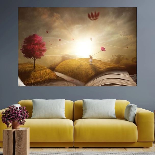 Декорация за стена (картина, пано) с мотив "Абстракция дете и книга - картина пано за стена". Изработена от олекотено PVC с дебелина 5 мм или канава от 100% памук, опъната върху дървена подрамка с дебелина 5 см. Изображението се печата с висококачествен UV печат, което е гаранция за запазване на цветовете с години!
