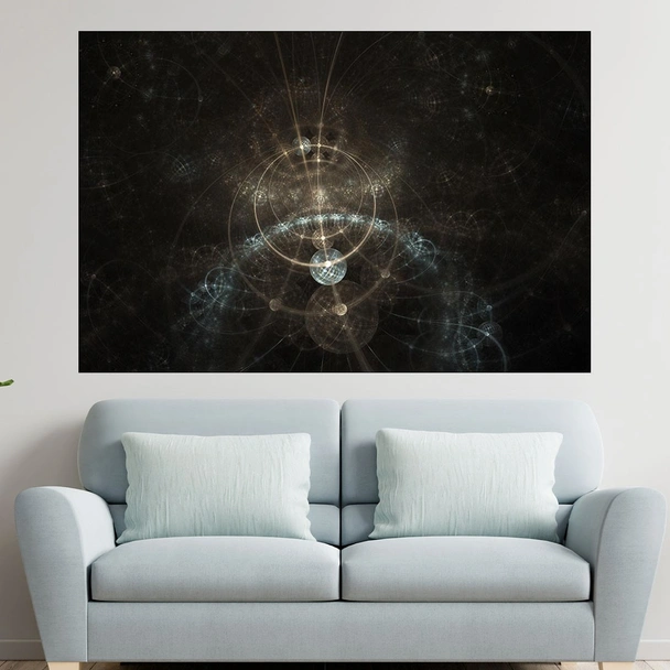 Декорация за стена (картина, пано) с мотив "Абстракция - фрактали - планети - картина пано за стена". Изработена от олекотено PVC с дебелина 5 мм или канава от 100% памук, опъната върху дървена подрамка с дебелина 5 см. Изображението се печата с висококачествен UV печат, което е гаранция за запазване на цветовете с години!