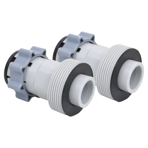 Адаптерите са изработени от висококачествена пластмаса в сив цвят, която гарантира здравина и дълготрайност. Материалът е устойчив на вода и химикали, използвани за поддръжка на басейни, което осигурява надеждна работа в продължение на дълъг период от време. Със своите прецизни размери, адаптерите осигуряват плътно и сигурно съединение, предотвратявайки течове и загуба на налягане. Това е ключово за правилното функциониране на вашата филтърна система.