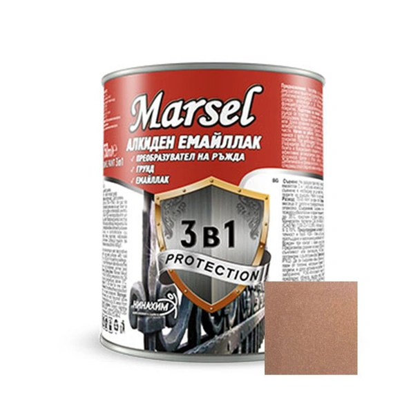 Алкидният емайллак 3в1 на Marsel в цвят мед е висококачествено решение, което обединява три критични стъпки в обработката на метали: активен ръждопреобразувател, антикорозионен грунд и финално декоративно покритие. Този продукт е създаден за ефикасна защита и естетическо обновяване на метални конструкции, като елиминира нуждата от предварително трудоемко почистване до чист метал. С него постигате професионален резултат с по-малко усилия, спестявайки време и разходи за материали.