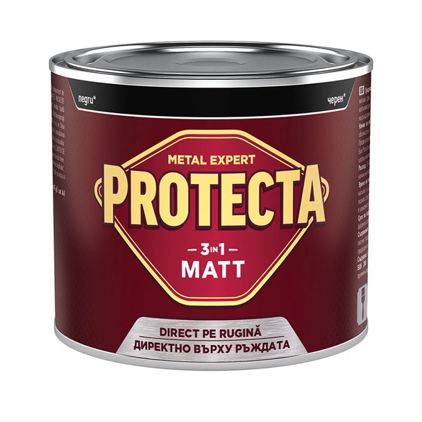 Боята за метал Protecta 3в1 Matt е професионално решение, създадено за тези, които търсят едновременно надеждна антикорозионна защита и модерен визуален ефект. Този продукт е уникален със своята комбинирана формула, която обединява в един състав свойствата на активен преобразувател на ръжда, устойчив свързващ грунд и висококачествено матово декоративно покритие. Матовият финиш е изключително практичен избор, тъй като специфичната му текстура успешно прикрива дребни неравности, шупли или други естетически недостатъци по повърхността на метала.
