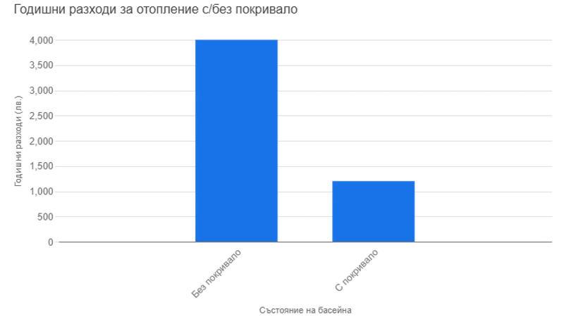 Енергийната ефективност е една от основните причини за инвестиция в качествено покривало. Проучванията показват, че соларните покривала могат да повишат температурата на водата с 3-5°C, намалявайки нуждата от допълнително отопление с до 70%. Това може да доведе до годишни икономии от 300-800 лева в зависимост от размера на басейна и климатичните условия. Всички видове покривала намаляват изпарението с 30-50%, което не само спестява вода, но и намалява нуждата от химикали с до 60%, тъй като UV лъчите разграждат хлора. Средно, собствениците на басейни отчитат намаление на разходите за химикали с 35-45% годишно след инсталиране на качествено покривало.