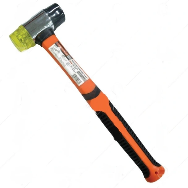 Основното предимство на този модел е наличието на две различни работни повърхности. От едната страна главата е оборудвана с висококачествена гума, която е идеална за много деликатни задачи и формоване на повърхности, изискващи мек контакт. От другата страна е разположена устойчива пластмасова част, която предоставя малко по-голяма твърдост за задачи, при които се изисква по-отчетлив удар, но без агресивността на стоманата. Тази комбинация позволява на майстора бързо да превключва между различните степени на въздействие, което повишава продуктивността и гарантира перфектен финиш при работа с алуминиеви листи, ламарина или меки пластмасови компоненти.