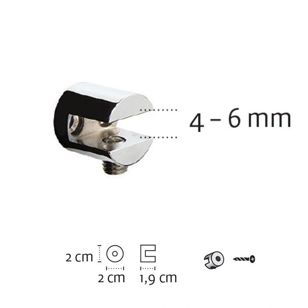 Обхват на захващане: Предназначени за стъклени или полимерни полици с дебелина от 4 мм до 6 мм.
