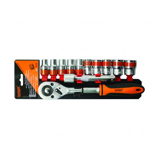 Всеки майстор знае, че добре подбраният комплект инструменти е ключът към бързия и успешен ремонт. Новата тресчотка с вложки, к-кт 12 части 1/2" 10-24 мм - Gadget е създадена да отговори на нуждите на съвременната домашна работилница и професионалната железария. Този комплект съчетава в себе си здравина, ергономичност и функционалност, като ви предоставя най-използваните размери инструменти на едно място. Независимо дали става въпрос за ремонт на автомобила или затягане на метални конструкции у дома, този сет е вашият надежден партньор.