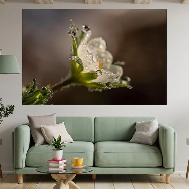 Декорация за стена (картина, пано) с мотив "Сутрешна роса - картина пано за стена". Изработена от олекотено PVC с дебелина 5 мм или канава от 100% памук, опъната върху дървена подрамка с дебелина 5 см. Изображението се печата с висококачествен UV печат, което е гаранция за запазване на цветовете с години!
