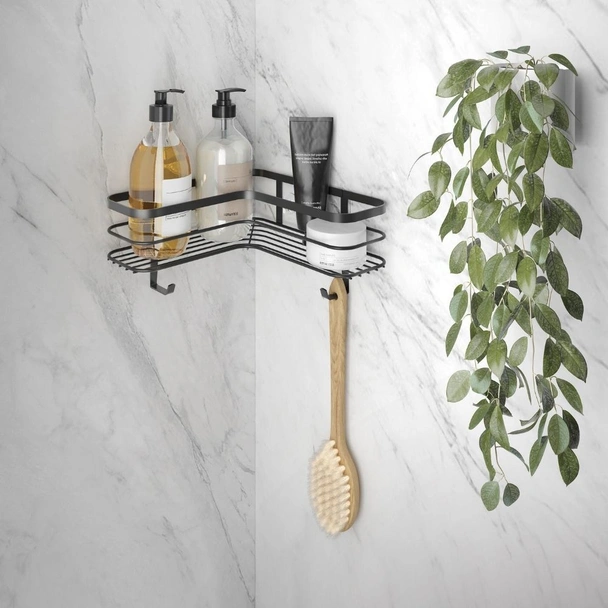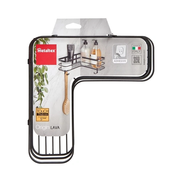 Ъглова Г-образна етажерка за баня черна U-FIX LAVA METALTEX