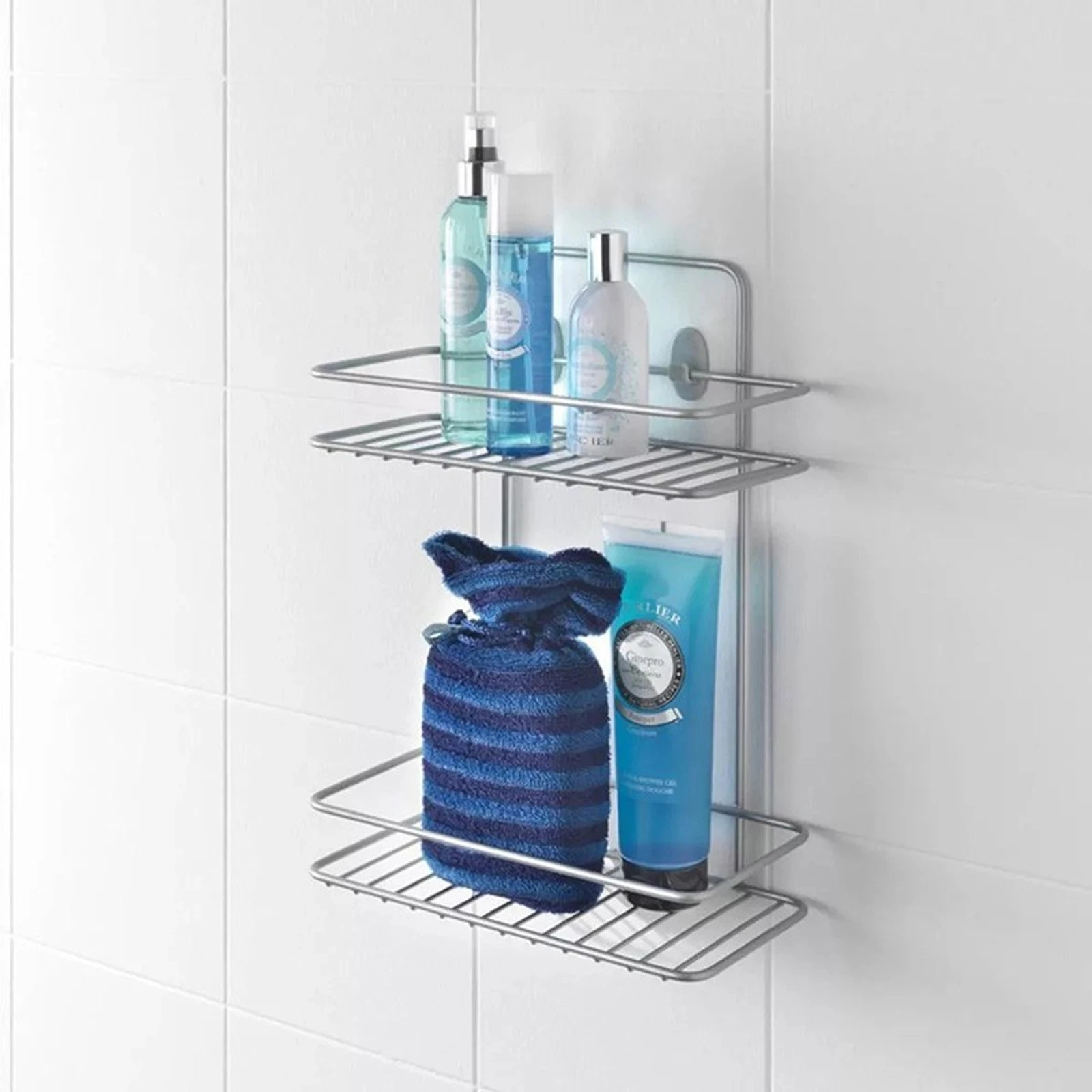С двете си нива, етажерката предлага достатъчно място за съхранение на шампоани, душ гелове, сапуни и други козметични продукти. Нейните компактни размери (26 x 13 x 35 см) я правят идеална за поставяне до мивката, във вътрешността на душ кабината или на удобно място, където са ви необходими най-често използваните продукти. Въпреки че е проектирана за баня, тя може да намери своето място и в други помещения, където се изисква устойчивост на влага, като например в кухненското помещение за подправки или в пералното помещение за почистващи препарати.