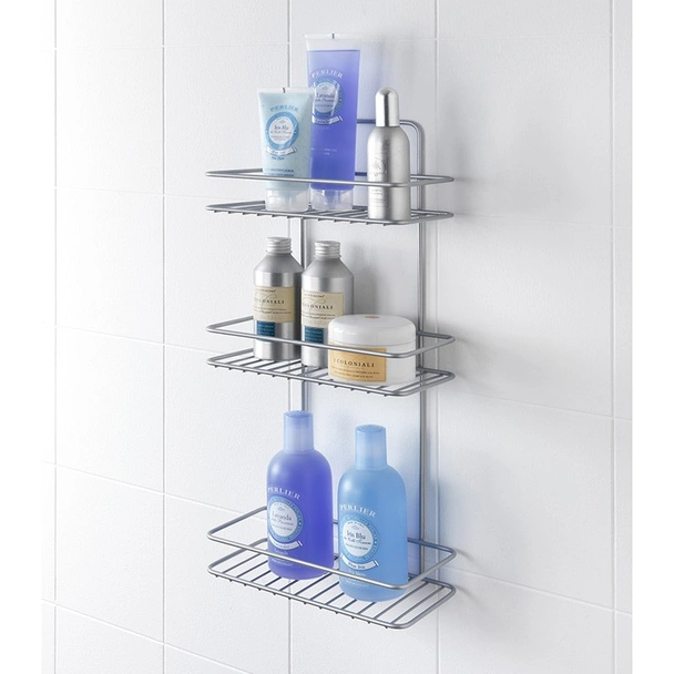 С трите си нива, етажерката предлага изобилие от място за съхранение на шампоани, душ гелове, сапуни, кремове и други козметични продукти. Нейните компактни размери (26 x 13 x 56 см) я правят подходяща за поставяне както до мивката, така и в душ кабината, или на друго удобно за вас място. Благодарение на здравата си конструкция, тя може да понесе тежестта на различни продукти, осигурявайки стабилност и сигурност.