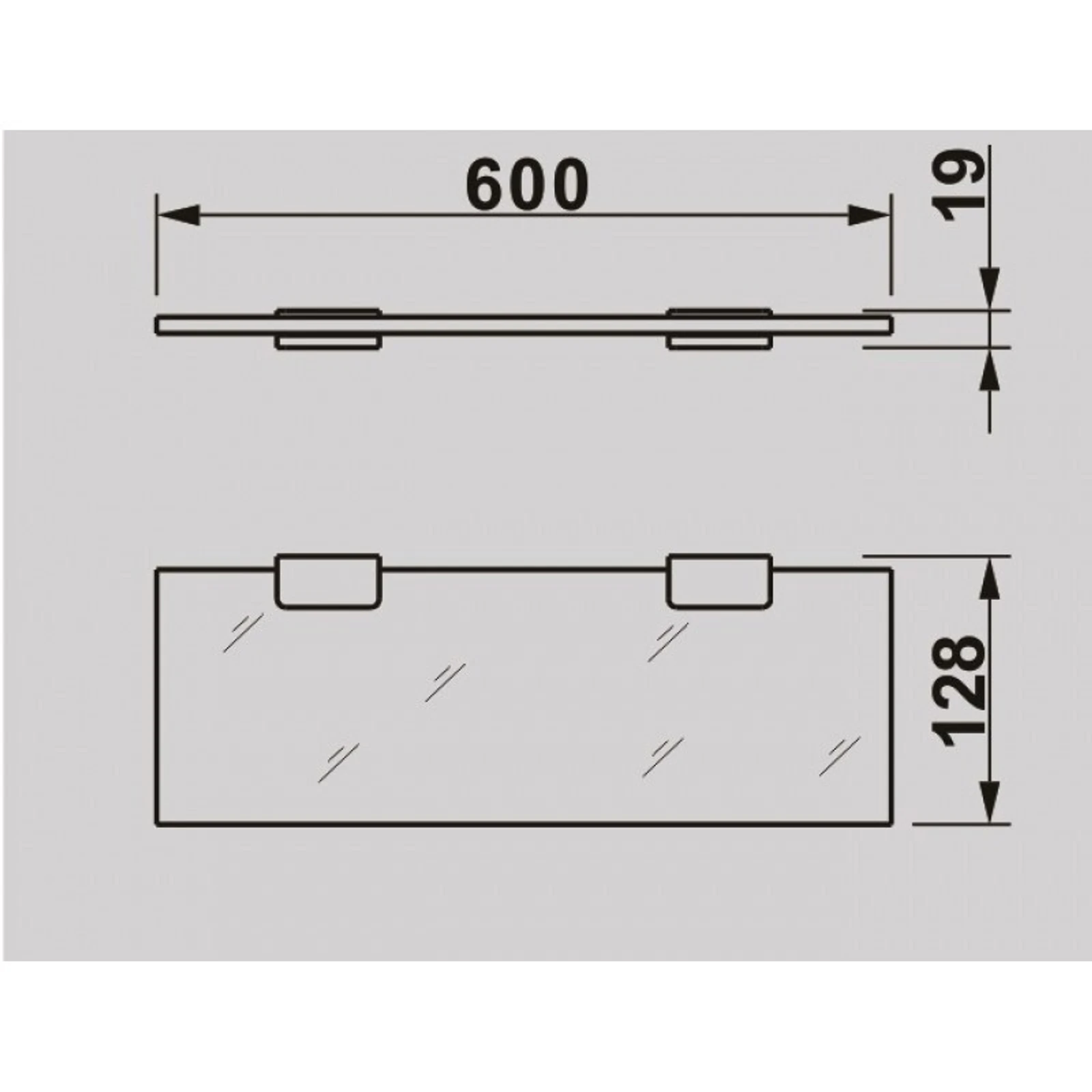 Лавицата е изработена от здрави и устойчиви материали, гарантиращи дълготрайна употреба във влажна среда. Металните части са от месинг с висококачествено хромирано покритие, което ги прави устойчиви на корозия и им придава блестящ, огледален вид. Стъклената повърхност е лесна за почистване и поддръжка, като същевременно е достатъчно здрава, за да издържи на ежедневна употреба. Комбинацията от стъкло и хром създава визия, която е едновременно класическа и съвременна.