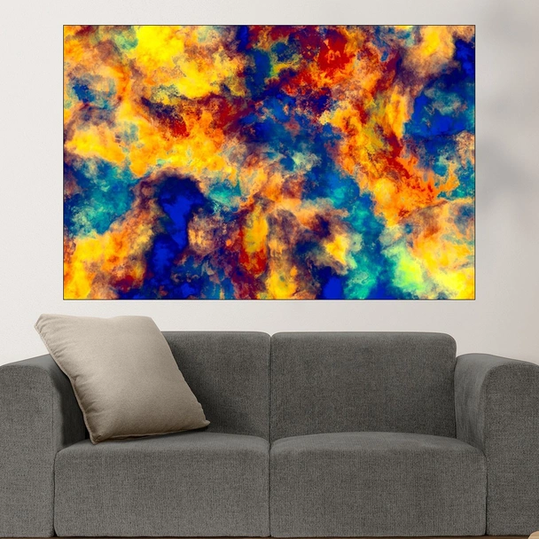 Декорация за стена (картина, пано) с мотив "Абстрактна текстура в жълто и синьо - картина пано за стена". Изработена от олекотено PVC с дебелина 5 мм или канава от 100% памук, опъната върху дървена подрамка с дебелина 5 см. Изображението се печата с висококачествен UV печат, което е гаранция за запазване на цветовете с години!