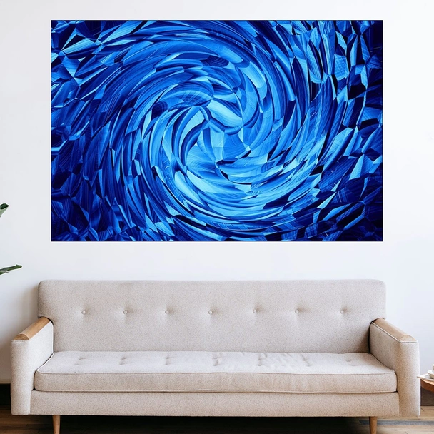 Декорация за стена (картина, пано) с мотив "Фон синя спирала - картина пано за стена". Изработена от олекотено PVC с дебелина 5 мм или канава от 100% памук, опъната върху дървена подрамка с дебелина 5 см. Изображението се печата с висококачествен UV печат, което е гаранция за запазване на цветовете с години!
