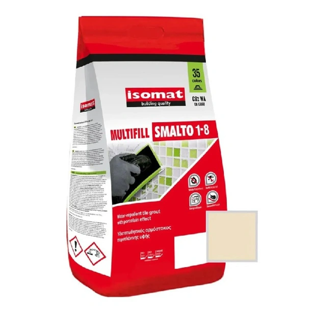 Isomat Multifill Smalto 1-8 е висок клас полимерно модифицирана циментова фугираща смес, проектирана да осигури перфектен завършек на вашите облицовки. Благодарение на специалните си съставки, тя създава изключително гладка повърхност, наподобяваща порцелан, която е едновременно естетична и лесна за поддръжка. Продуктът се отличава с висока механична здравина и отлична водонепропускливост, което гарантира дълготрайна защита на междинните пространства между плочките.