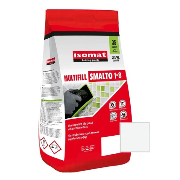 Isomat Multifill Smalto 1-8 е висок клас полимерно модифицирана циментова фугираща смес, проектирана да осигури перфектен завършек на вашите облицовки. Благодарение на специалните си съставки, тя създава изключително гладка повърхност, наподобяваща порцелан, която е едновременно естетична и лесна за поддръжка. Продуктът се отличава с висока механична здравина и отлична водонепропускливост, което гарантира дълготрайна защита на междинните пространства между плочките.