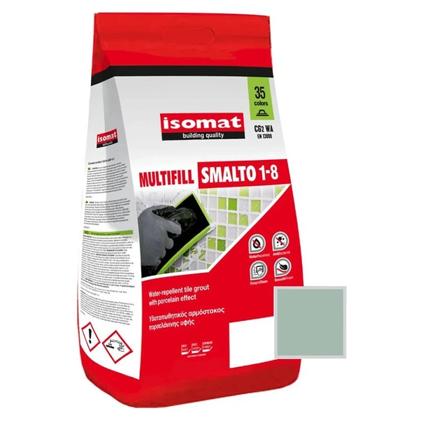 Isomat Multifill Smalto 1-8 е висок клас полимерно модифицирана циментова фугираща смес, проектирана да осигури перфектен завършек на вашите облицовки. Благодарение на специалните си съставки, тя създава изключително гладка повърхност, наподобяваща порцелан, която е едновременно естетична и лесна за поддръжка. Продуктът се отличава с висока механична здравина и отлична водонепропускливост, което гарантира дълготрайна защита на междинните пространства между плочките.