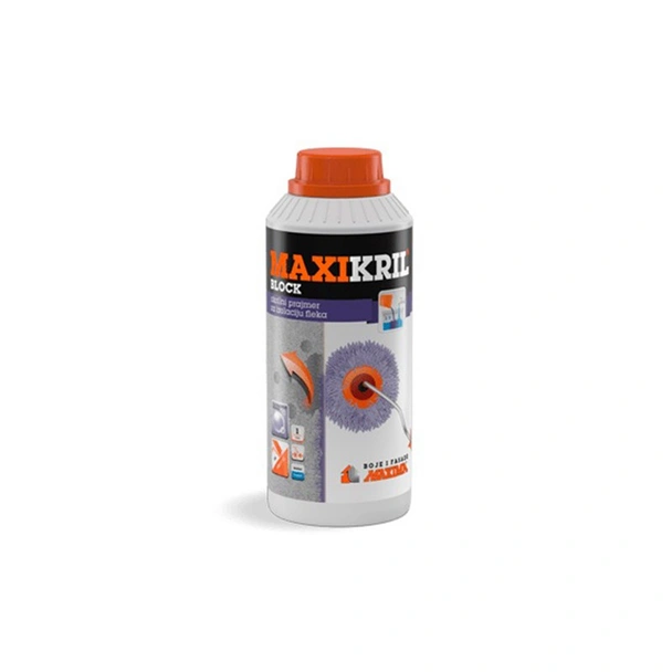 Основното предназначение на Maxikril Block е да създаде непроницаема бариера срещу специфични замърсители като никотинови отлагания от тютюнев дим, сажди след пожари или задимяване, както и петна от стари течове и влага. Стандартните грундове често позволяват на тези водоразтворими субстанции да мигрират през слоя боя, докато формулата на Maxikril Block ги капсулира трайно в основата. Грундът укрепва структурата на по-малко твърди или леко ронливи шпакловки и гипсокартон, осигурявайки хомогенна повърхност без риск от обезцветяване на финишното покритие.
