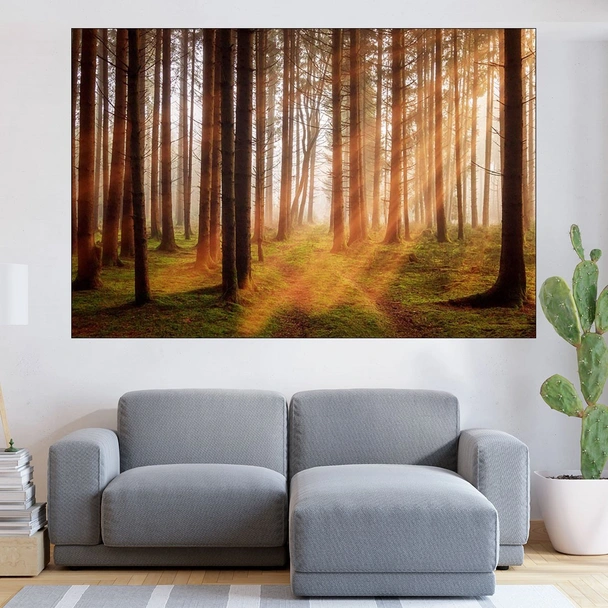 Изгрев в борова гора - картина пано за стена