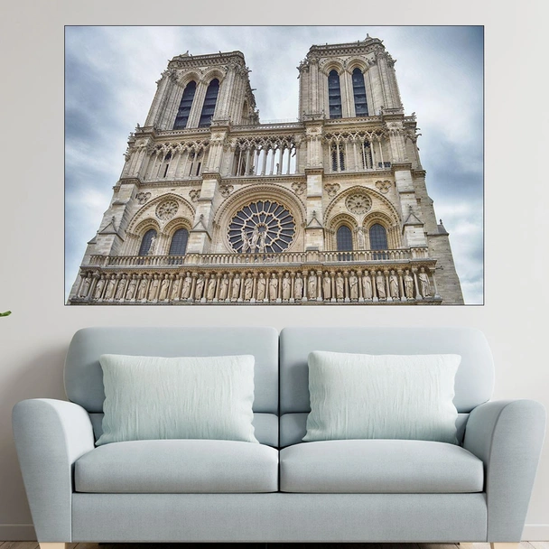 Декорация за стена (картина, пано) с мотив "Катедралата Нотр-дам в Париж - картина пано за стена". Изработена от олекотено PVC с дебелина 5 мм или канава от 100% памук, опъната върху дървена подрамка с дебелина 5 см. Изображението се печата с висококачествен UV печат, което е гаранция за запазване на цветовете с години!