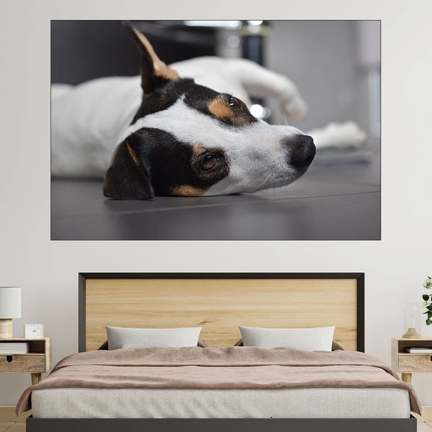 Декорация за стена (картина, пано) с мотив "Легнал Джак Ръсел - картина пано за стена". Изработена от олекотено PVC с дебелина 5 мм или канава от 100% памук, опъната върху дървена подрамка с дебелина 5 см. Изображението се печата с висококачествен UV печат, което е гаранция за запазване на цветовете с години!