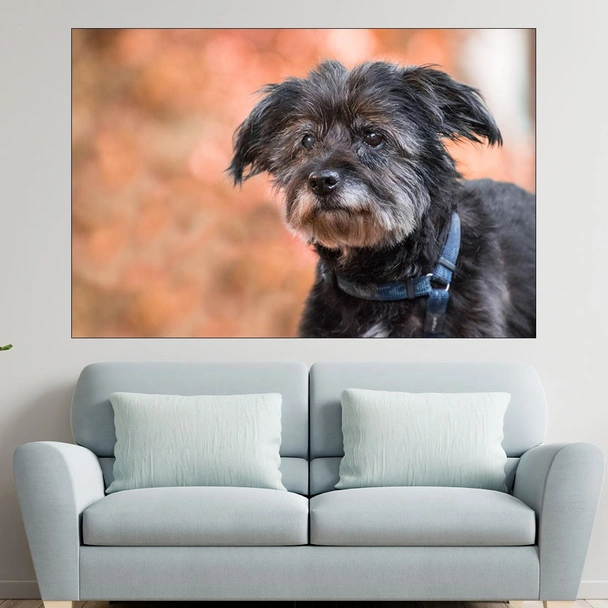 Декорация за стена (картина, пано) с мотив "Потрет на черно куче - картина пано за стена". Изработена от олекотено PVC с дебелина 5 мм или канава от 100% памук, опъната върху дървена подрамка с дебелина 5 см. Изображението се печата с висококачествен UV печат, което е гаранция за запазване на цветовете с години!