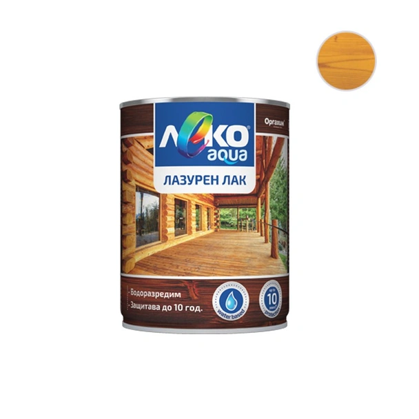 Лазурният лак за дърво Леко Aqua на утвърдения производител Оргахим в класически цвят бор е модерно и екологично решение за декорация и защита. Продуктът е разработен на водна основа, което го прави изключително подходящ за хора, търсещи висока ефективност с минимално съдържание на вредни емисии. Този лак придава на дървесината топъл и натурален светъл нюанс, завършващ с елегантен гланцов финиш. Специалната му формулировка осигурява комплексна грижа, като едновременно импрегнира материала и създава устойчив повърхностен слой, идеален както за вътрешни детайли, така и за външни конструкции.