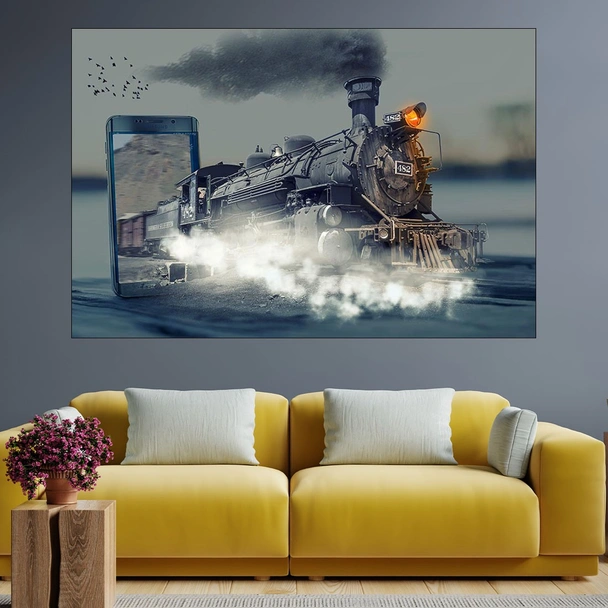 Декорация за стена (картина, пано) с мотив "Манипулация влак с парен локомотив - картина пано за стена". Изработена от олекотено PVC с дебелина 5 мм или канава от 100% памук, опъната върху дървена подрамка с дебелина 5 см. Изображението се печата с висококачествен UV печат, което е гаранция за запазване на цветовете с години!