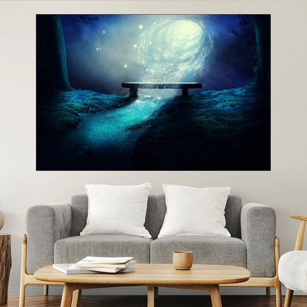 Декорация за стена (картина, пано) с мотив "Портал към галактиката - картина пано за стена". Изработена от олекотено PVC с дебелина 5 мм или канава от 100% памук, опъната върху дървена подрамка с дебелина 5 см. Изображението се печата с висококачествен UV печат, което е гаранция за запазване на цветовете с години!