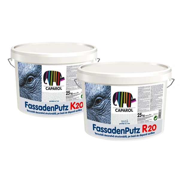 Caparol Fassadenputz R20 е висококачествена структурна декоративна мазилка на базата на акрилна дисперсия, специално създадена за външно приложение. Продуктът се отличава със своята влачена структура, постигната чрез прецизно селектирани камъчета с размер 2 мм. Благодарение на полимерната си основа, тя осигурява изключителна здравина и еластичност, което я прави силно устойчива на механични удари и неблагоприятни климатични условия.