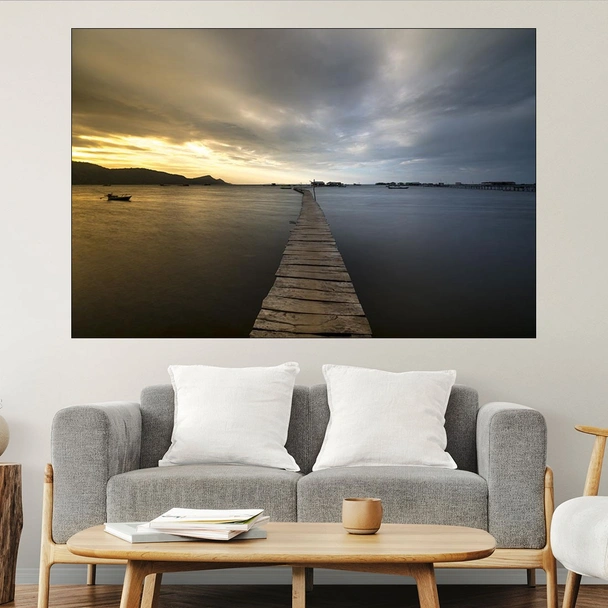 Декорация за стена (картина, пано) с мотив "Дървен мост на остров Фукок - картина пано за стена". Изработена от олекотено PVC с дебелина 5 мм или канава от 100% памук, опъната върху дървена подрамка с дебелина 5 см. Изображението се печата с висококачествен UV печат, което е гаранция за запазване на цветовете с години!