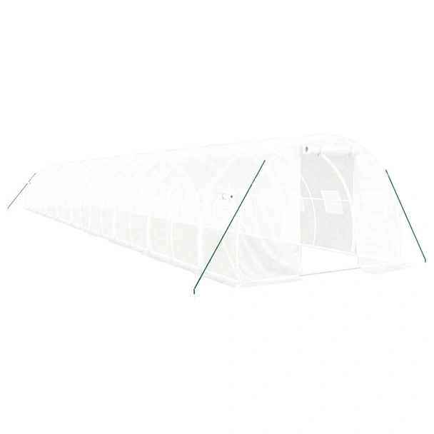 Покритието на оранжерията е изработено от висококачествен армиран полиетилен (PE) с плътност 140 г/м2. Този материал е широко ценен в земеделието заради своята здравина, лекота и изключителна устойчивост на ултравиолетови лъчи. Бялото покритие позволява на слънчевата светлина да се разсейва равномерно, като същевременно предпазва насажденията от птици и вредители. Основата на конструкцията е изградена от поцинкована стомана – материал, който е изключително твърд и устойчив на механични натоварвания. Поцинковането осигурява дълготрайна антикорозионна защита, което е жизненоважно при излагане на външни климатични влияния и висока влажност вътре в съоръжението.