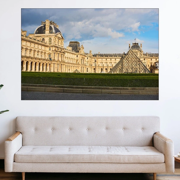 Декорация за стена (картина, пано) с мотив "Лувъра в Париж - картина пано за стена". Изработена от олекотено PVC с дебелина 5 мм или канава от 100% памук, опъната върху дървена подрамка с дебелина 5 см. Изображението се печата с висококачествен UV печат, което е гаранция за запазване на цветовете с години!