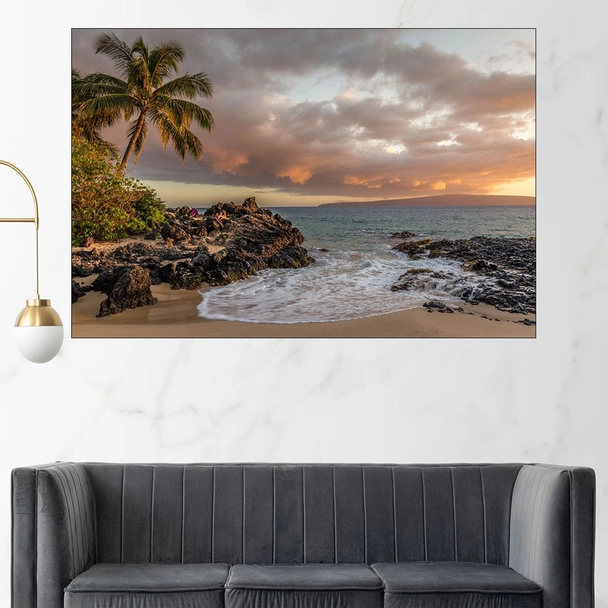 Декорация за стена (картина, пано) с мотив "Самотен плаж - картина пано за стена". Изработена от олекотено PVC с дебелина 5 мм или канава от 100% памук, опъната върху дървена подрамка с дебелина 5 см. Изображението се печата с висококачествен UV печат, което е гаранция за запазване на цветовете с години!