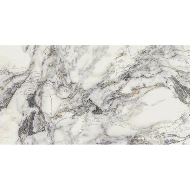 Калиброван гранитогрес Regency AB Blanco от испанската марка EL MOLINO с размери 62x120 см съчетава издръжливост и елегантен дизайн, имитиращ мрамор. Комбинацията от бял и черен цвят създава изискан и модерен ефект, а полирана повърхност придава блясък и светлина на помещението. Различните лица на плочката гарантират естествена динамика и реалистичен визуален ефект.