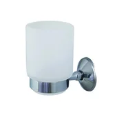 Държачът на чашата е изработен от масивен месинг, което гарантира неговата изключителна здравина и дълготрайна употреба. Месингът е известен със своята устойчивост на корозия, което го прави идеален за влажната среда на банята. Хром-никеловото покритие, с дебелина над 0.3 µm, придава на аксесоара огледален блясък, който е устойчив на надраскване и избледняване, гарантирайки дълготрайния му вид. Чашата е от матирано стъкло, което не само изглежда елегантно, но и е лесно за почистване и поддържане на хигиена.