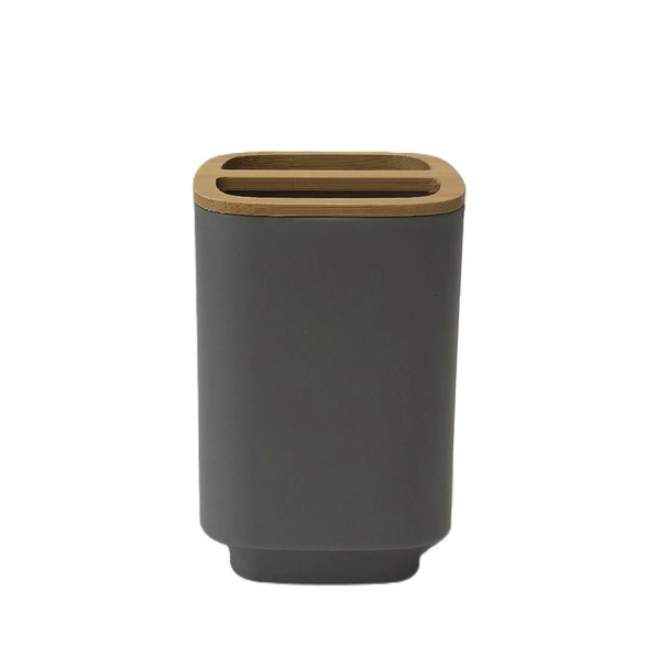 Внесете стил и естетика в банята си с практичната поставка за четки за зъби с бамбук. Този елегантен и функционален аксесоар е идеалното решение за организиране на вашите тоалетни принадлежности. Уникалната комбинация от семпъл сив цвят и топъл акцент от естествен бамбук придава на поставката модерен и приветлив вид, който се вписва перфектно във всяко съвременно санитарно помещение.