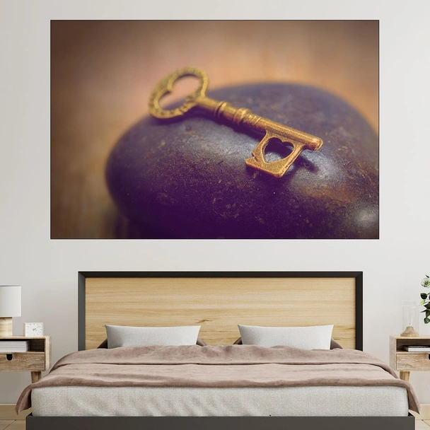 Декорация за стена (картина, пано) с мотив "Ключ към сърцето - картина пано за стена". Изработена от олекотено PVC с дебелина 5 мм или канава от 100% памук, опъната върху дървена подрамка с дебелина 5 см. Изображението се печата с висококачествен UV печат, което е гаранция за запазване на цветовете с години!