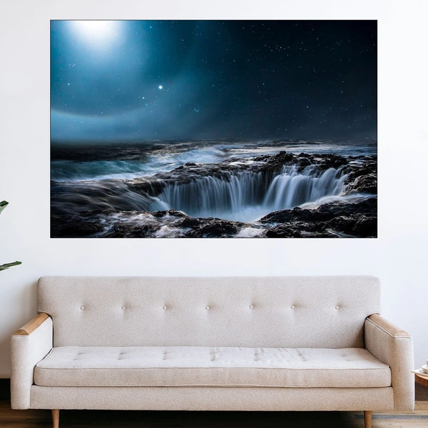 Декорация за стена (картина, пано) с мотив "Море и звезди - картина пано за стена". Изработена от олекотено PVC с дебелина 5 мм или канава от 100% памук, опъната върху дървена подрамка с дебелина 5 см. Изображението се печата с висококачествен UV печат, което е гаранция за запазване на цветовете с години!