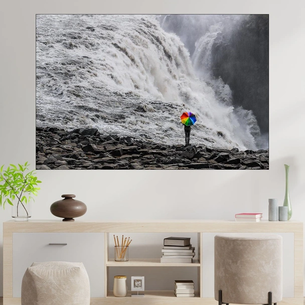 С чадър пред водопада - картина пано за стена