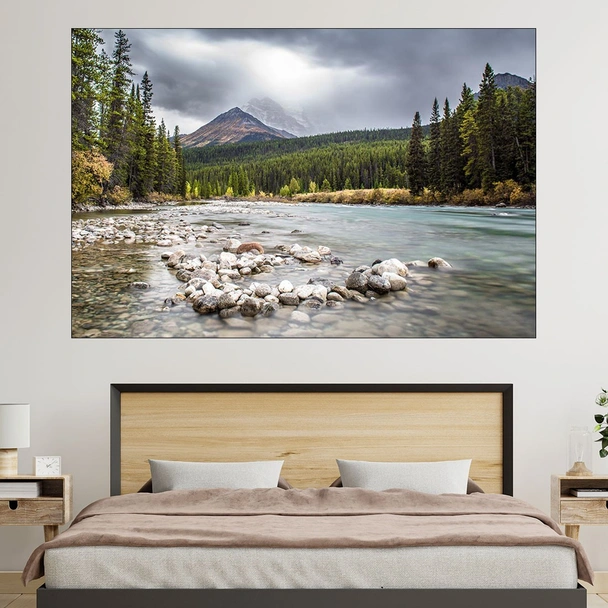 На брега на река в гората - картина пано за стена