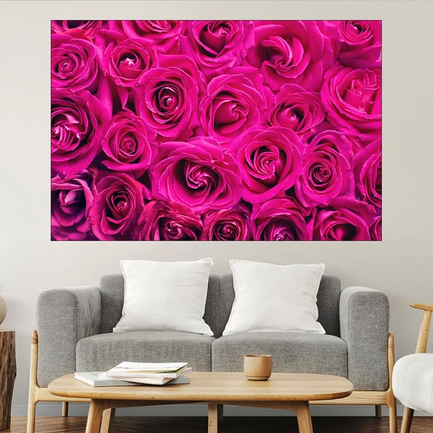 Декорация за стена (картина, пано) с мотив "Фон от рози - картина пано за стена". Изработена от олекотено PVC с дебелина 5 мм или канава от 100% памук, опъната върху дървена подрамка с дебелина 5 см. Изображението се печата с висококачествен UV печат, което е гаранция за запазване на цветовете с години!