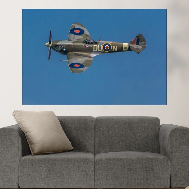 Декорация за стена (картина, пано) с мотив "Самолет в авиошоу - spitfire - картина пано за стена". Изработена от олекотено PVC с дебелина 5 мм или канава от 100% памук, опъната върху дървена подрамка с дебелина 5 см. Изображението се печата с висококачествен UV печат, което е гаранция за запазване на цветовете с години!