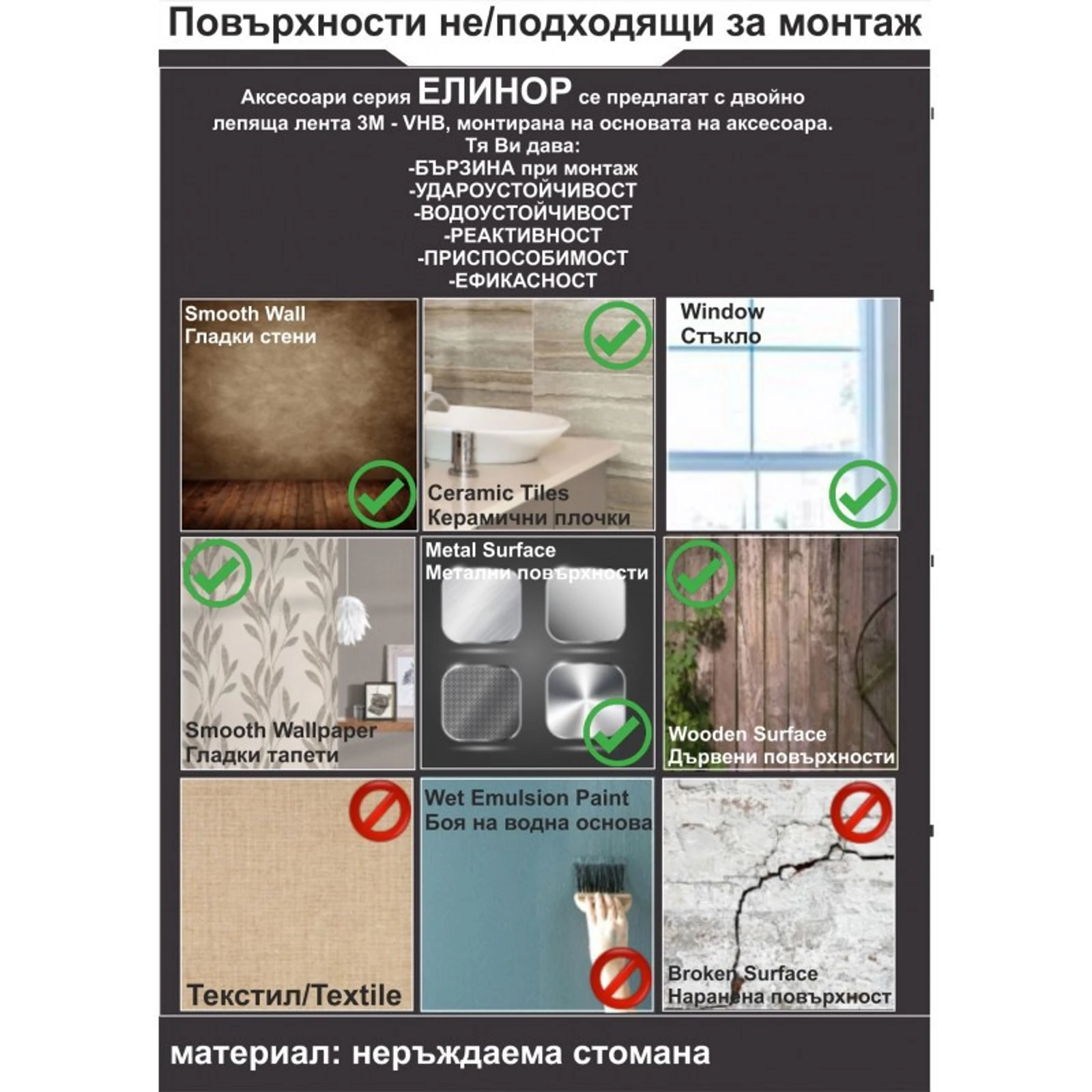 Едно от най-големите предимства на този аксесоар е неговият изключително лесен и сигурен монтаж. Сапунерката се закрепва към стената с помощта на иновативна двойнолепяща лента 3M - VHB. Тази технология гарантира изключително здраво и надеждно залепване, което издържа на влага и температурни промени, без да е необходимо пробиване на плочките. Така спестявате време и усилия, като същевременно запазвате целостта на стенната облицовка. Просто изберете подходящо място, почистете повърхността, отлепете защитното фолио и залепете.