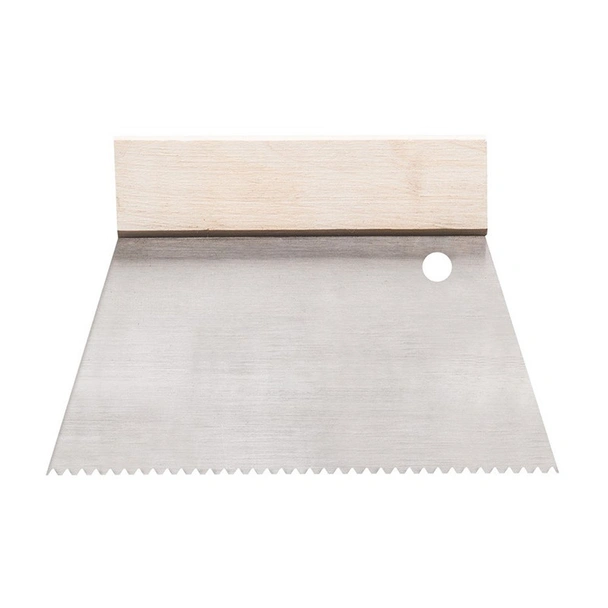Инструментът се отличава със стабилна конструкция, която издържа на механични натоварвания при работа с гъсти строителни смеси. Дизайнът е съобразен с ергономичните нужди на майстора, като позволява стабилен захват и лесно водене по повърхността. Това намалява напрежението в китката и ръката, дори при продължителни работни сесии. Висококачествените материали, вложени в изработката, гарантират, че шпатулата ще запази своята геометрия и острота на зъбите дълго време.