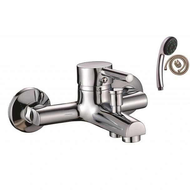 Наличието на превключвател (девиатор) позволява бързо насочване на водния поток между чучура за пълнене на ваната и ръчния душ. Дизайнът за стенен монтаж е практичен, тъй като освобождава място и улеснява почистването на пространството около ваната.
