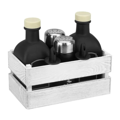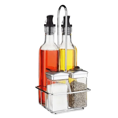 С комплектите за зехтин, оцет и подправки лесно можете да удовлетворите вкусовите предпочитания на всички, които се хранят на масата. С тяхна помощ зехтинът, оцетът, солта, черният пипер ще са подръка на всички.