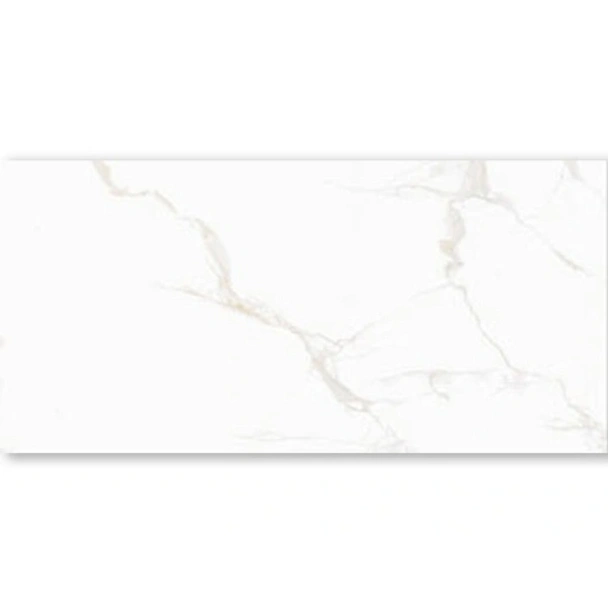 Тази серия съчетава чистия бял фон на Carrara мрамор с много нежни, естествено изглеждащи златни вени. Златният детайл е дискретен и ненатрапчив – придава топлина и лукс, без да доминира. Гланцовото покритие усилва отразяването на светлината, прави помещението визуално по-голямо и по-светло и създава много модерен, хотелски завършек.