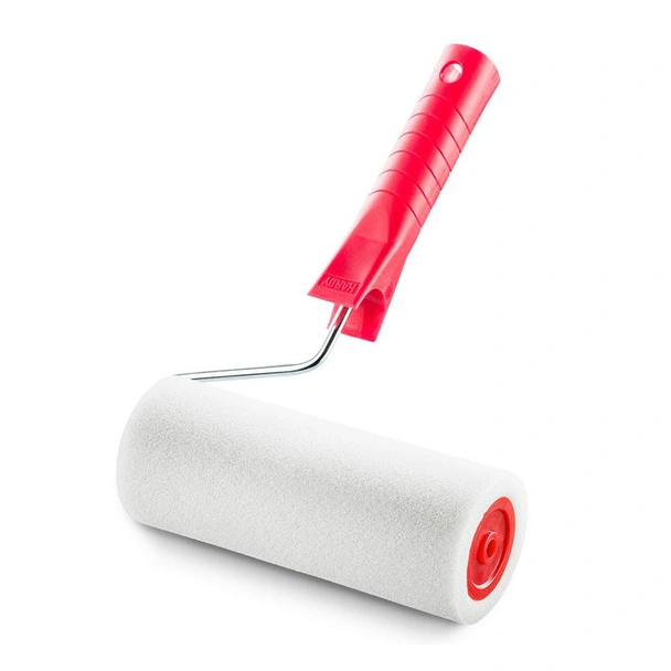 Работната част е произведена от пяна с плътност 35 кг/м3, която осигурява контролирано поемане и освобождаване на лака. Тази структура ефективно предотвратява образуването на мехурчета и капене, което е критично за постигане на финиш, наподобяващ професионално пръскане с пистолет. Широчината от 25 см позволява бързо и ефективно покриване на големи площи като врати, мебели и плотове, като същевременно поддържа висока прецизност.