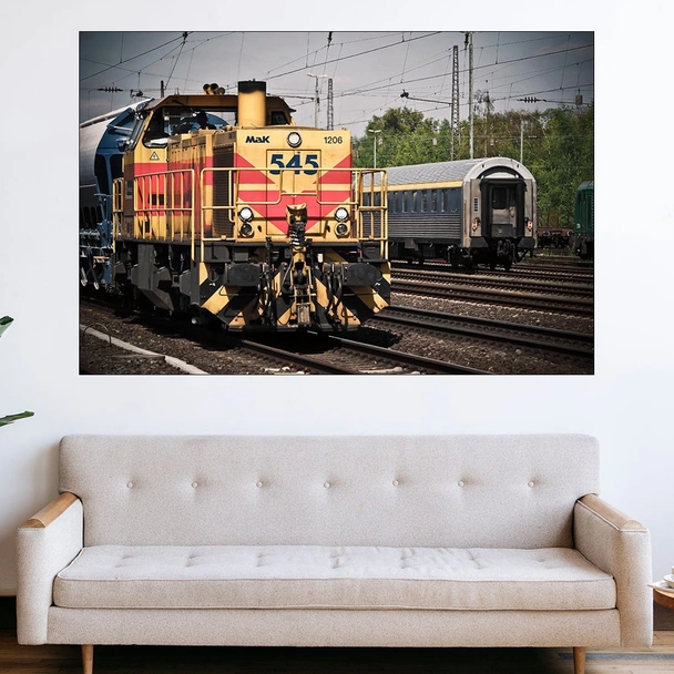 Декорация за стена (картина, пано) с мотив "Локомотив в близък план - картина пано за стена". Изработена от олекотено PVC с дебелина 5 мм или канава от 100% памук, опъната върху дървена подрамка с дебелина 5 см. Изображението се печата с висококачествен UV печат, което е гаранция за запазване на цветовете с години!