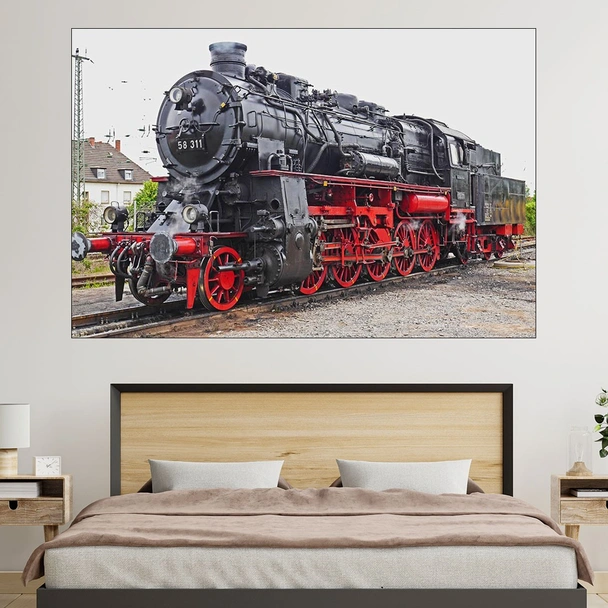 Декорация за стена (картина, пано) с мотив "Стар парен локомотив - картина пано за стена". Изработена от олекотено PVC с дебелина 5 мм или канава от 100% памук, опъната върху дървена подрамка с дебелина 5 см. Изображението се печата с висококачествен UV печат, което е гаранция за запазване на цветовете с години!