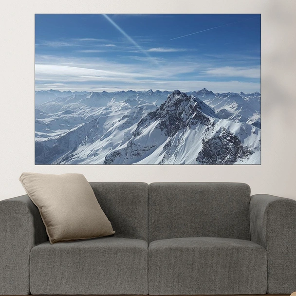 Декорация за стена (картина, пано) с мотив "Таннхаймер през зимата - картина пано за стена". Изработена от олекотено PVC с дебелина 5 мм или канава от 100% памук, опъната върху дървена подрамка с дебелина 5 см. Изображението се печата с висококачествен UV печат, което е гаранция за запазване на цветовете с години!